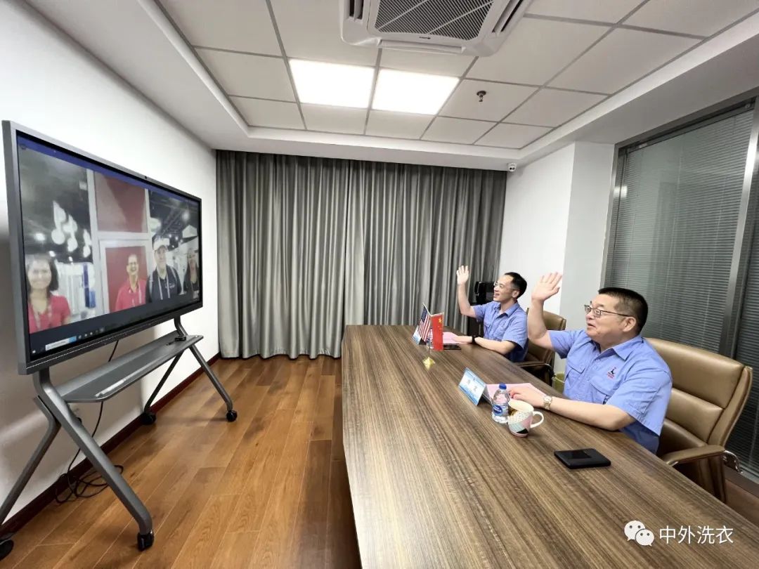 7月31日晚,海獅進行了項目云簽約。本項目是位于北美一家酒洗企業,購置的設備涵蓋了洗衣龍系統、水洗、烘干、后整理設備等全套海獅高端洗滌設備。整套設備采用定制化設計制造,裝載機上還定制了中國龍圖案。