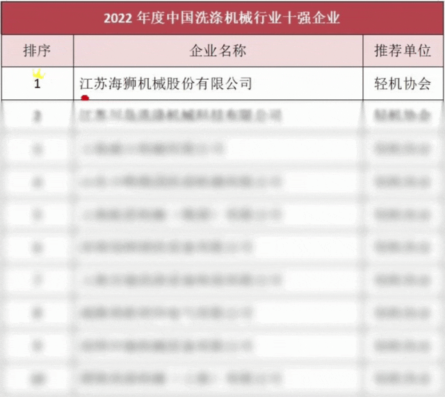 同時,由中國輕工機械協(xié)會推薦,榮獲2022年度中國洗滌機械行業(yè)十強企業(yè)中,江蘇海獅機械榮居榜首,繼續(xù)領跑工業(yè)洗滌機械行業(yè),展現(xiàn)出54年耕耘工業(yè)洗滌機械行業(yè)的深厚積淀和卓越成績。