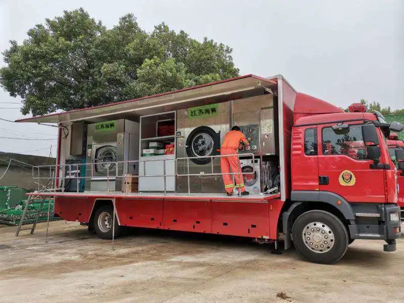 為做好后勤保障服務,海獅消防洗滌車早早進入了抗洪救災一線,為抗洪救災的解放軍戰士洗滌、烘干戰服,保障戰士們第一時間穿到干凈、健康的戰服,給抗洪一線的戰士們帶來溫暖。