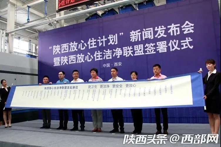 5月19日,由陜西省飯店協會、陜西省洗染行業協會聯合推出“陜西省放心住計劃”暨陜西放心住潔凈聯盟簽署儀式在西咸新區秦漢新城租洗一體化智能工廠內舉行。此次“計劃”將陜西停用并回收疫情期間價值500萬元的布草,首批投放2萬套全新抑菌智能布草進行更新換代,后期還將根據市場需求陸續投放第二批、第三批抑菌智能布草,最