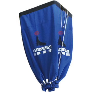吊袋輸送系統為布草提供了高效、節能的傳送方式,布草通過升降機傳送至相應的軌道,利用軌道的高度差及布草的自重滑行至落料點。